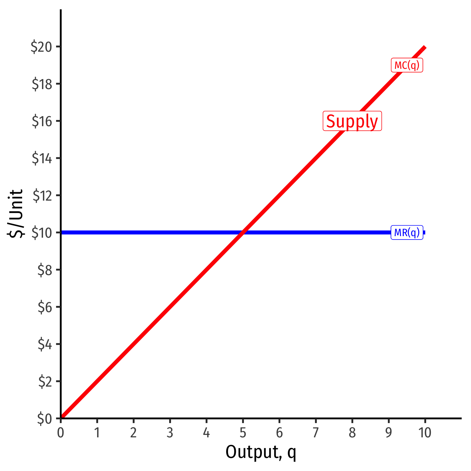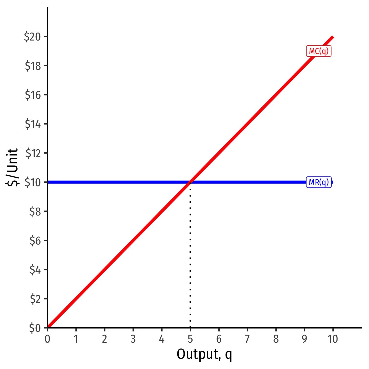 Example: A firm sells bushels of wheat in a very competitive market. The current market price is $10/bushel.