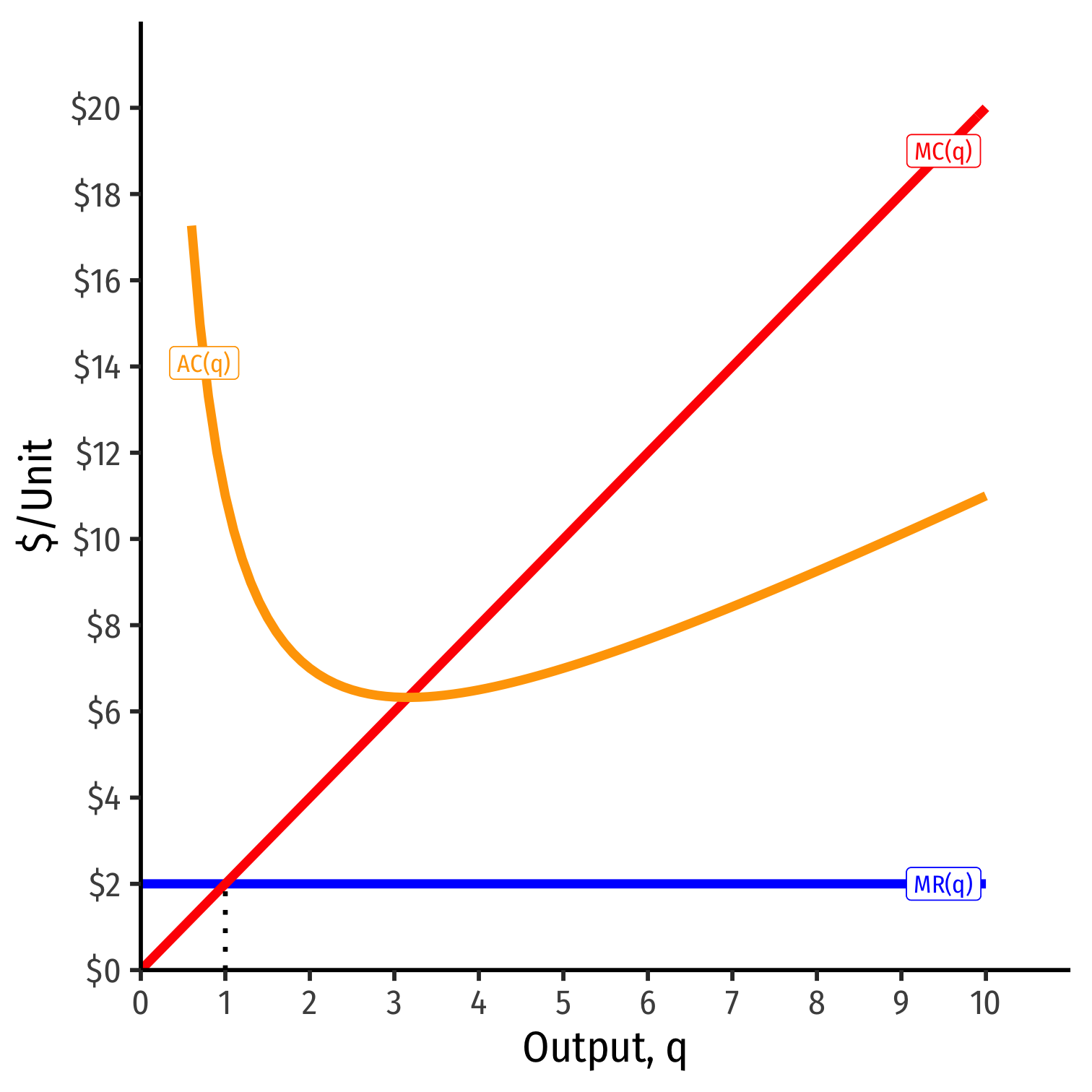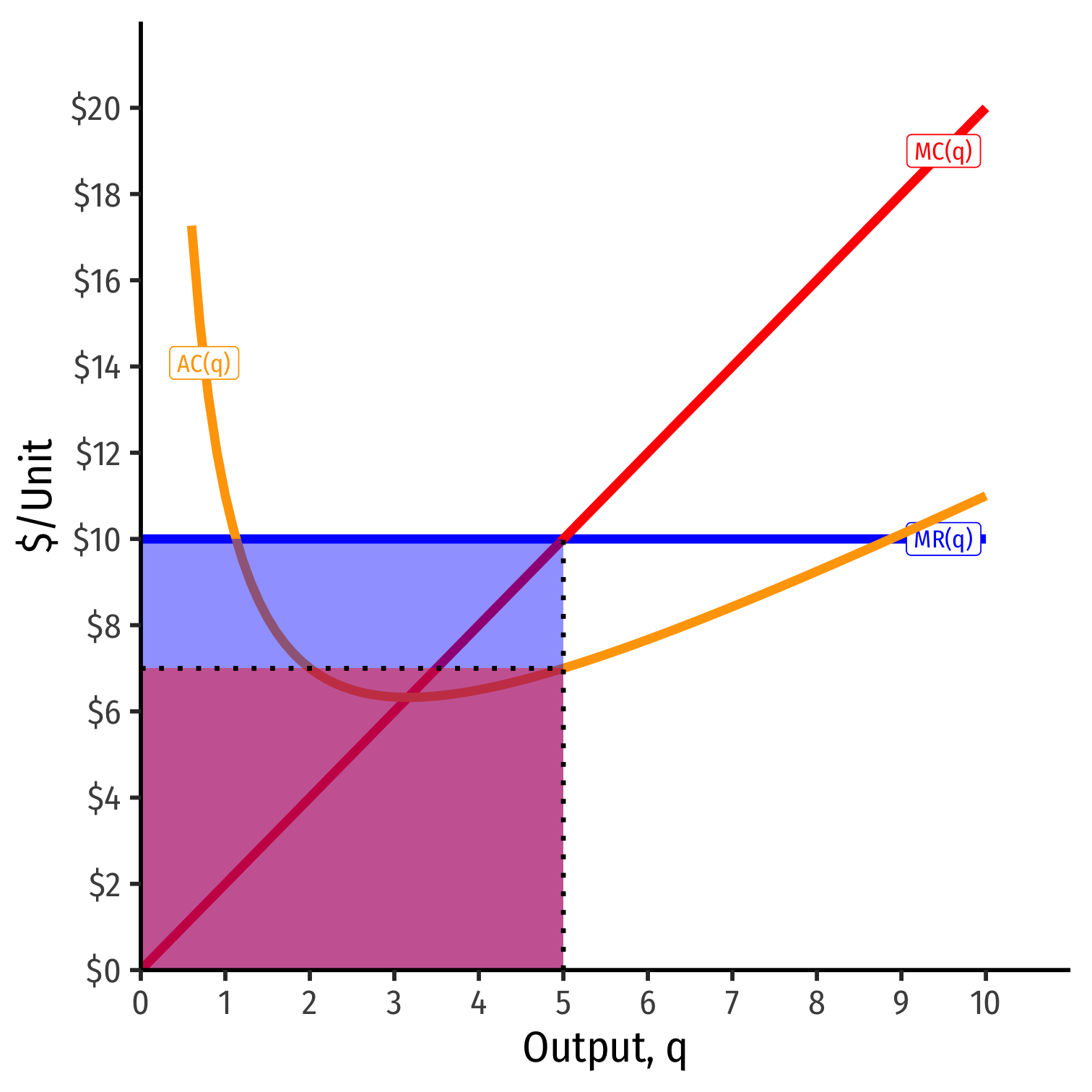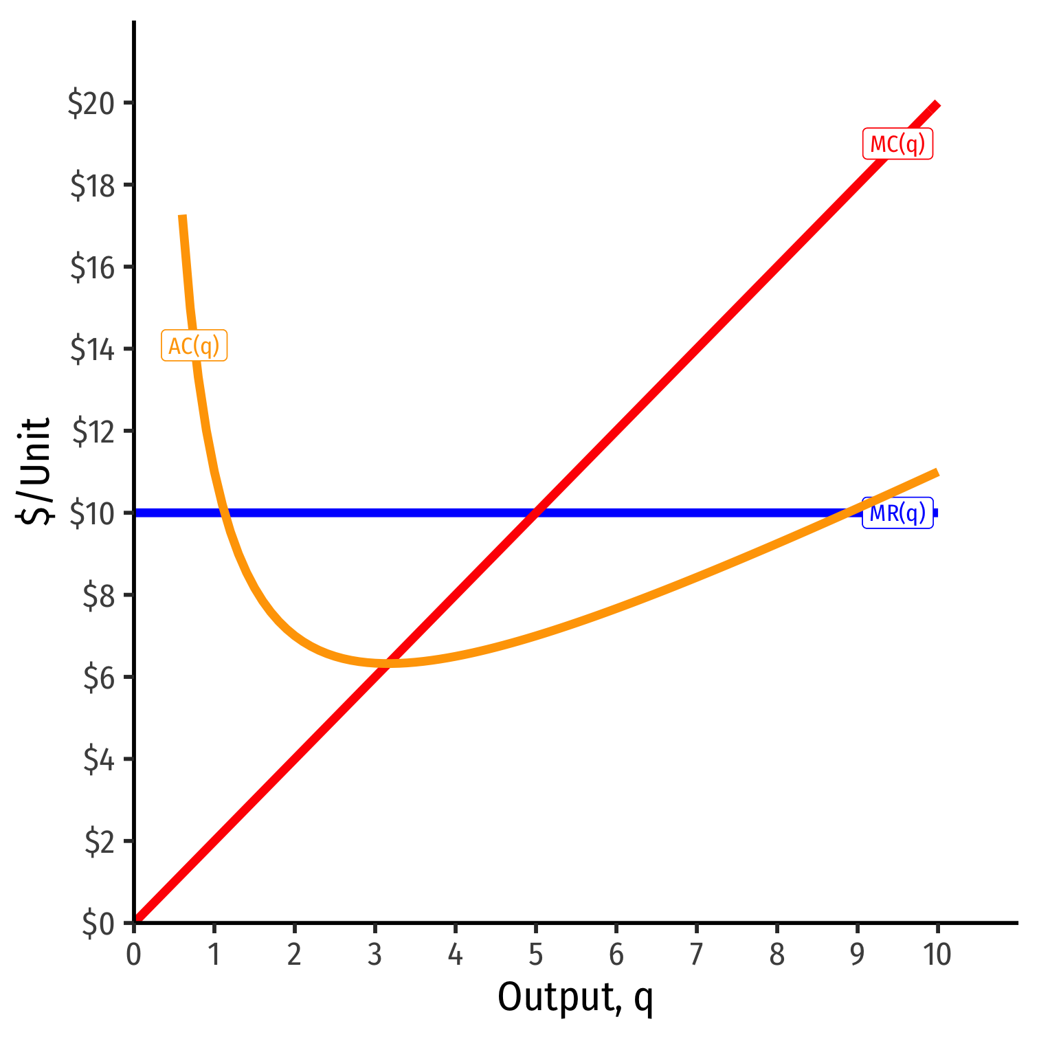 Profit per unit can be calculated as: π(q)q=AR(q)−AC(q)=p−AC(q)