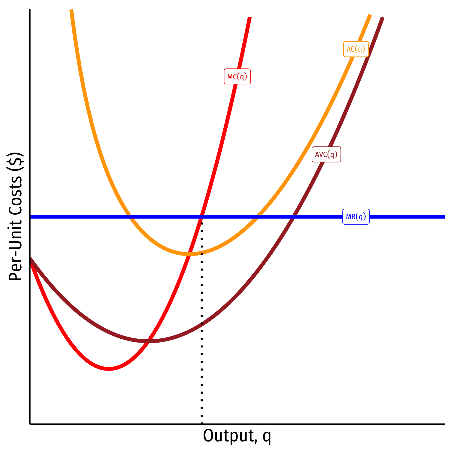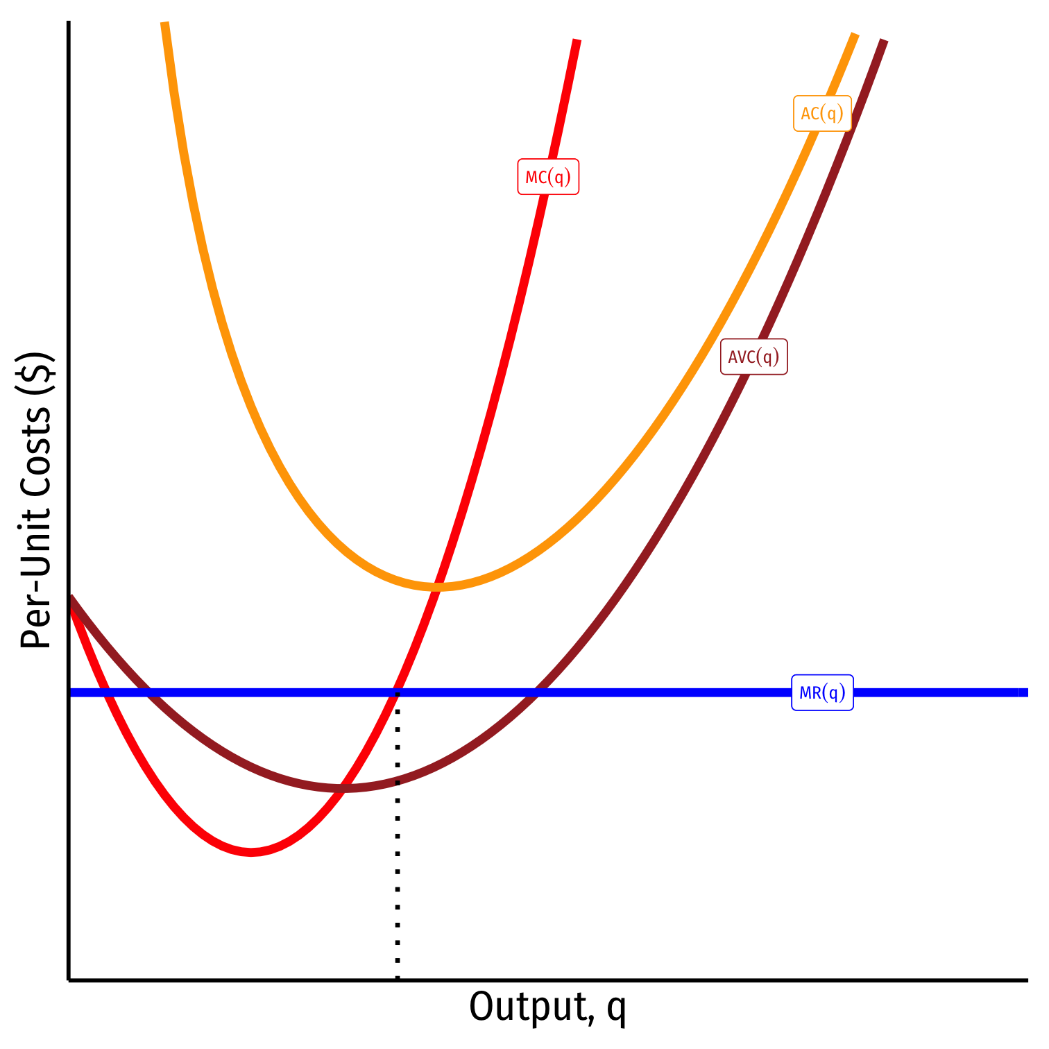 π from producing<π from not producingπ(q)<−fpq−VC(q)−f<−fpq−VC(q)<0pq<VC(q)p<AVC(q)