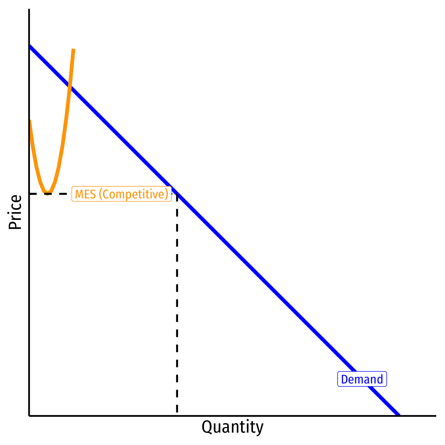 Minimum Efficient Scale (MES): q with the lowest AC(q)
