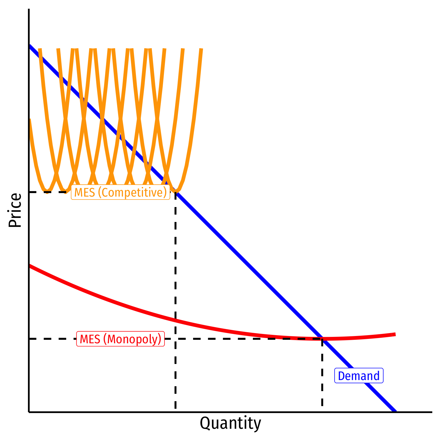 If MES is small relative to market demand...