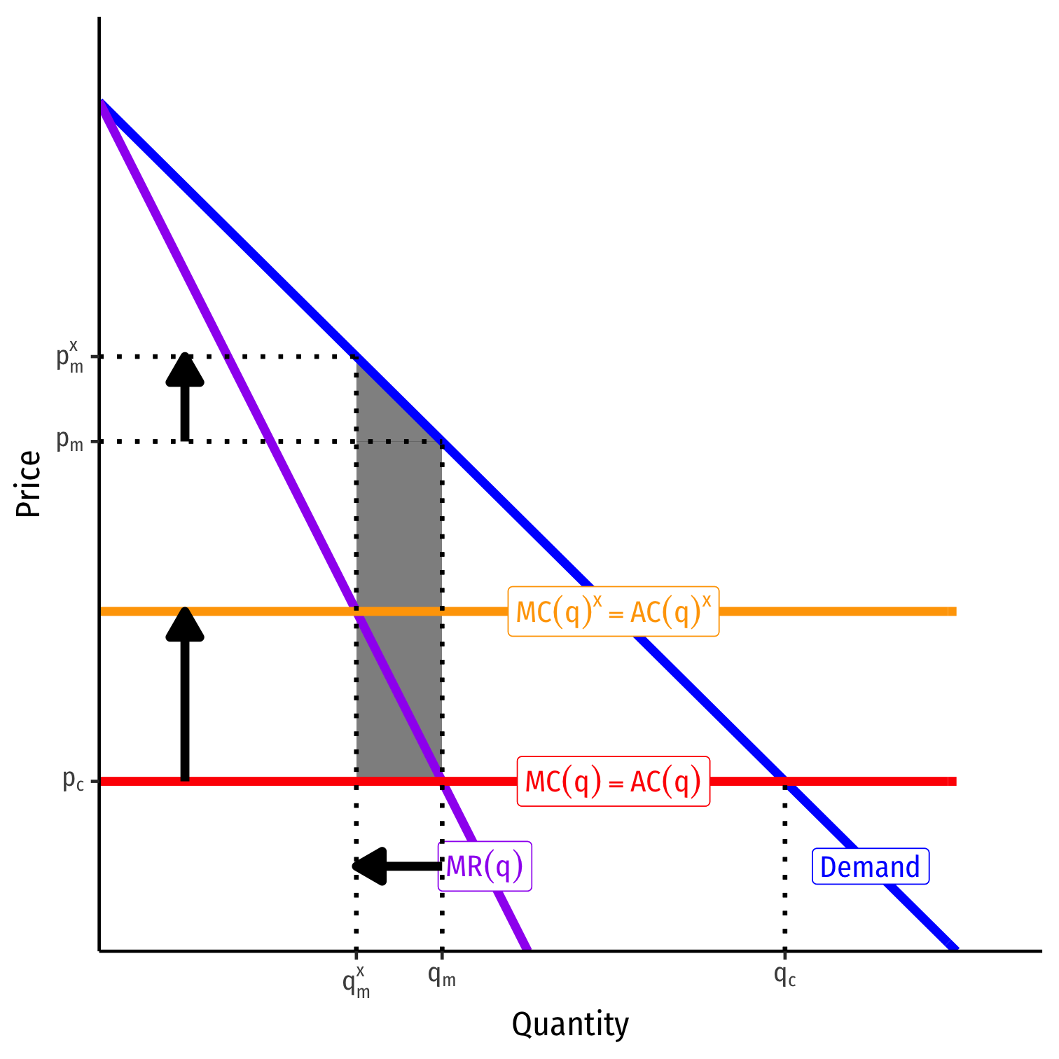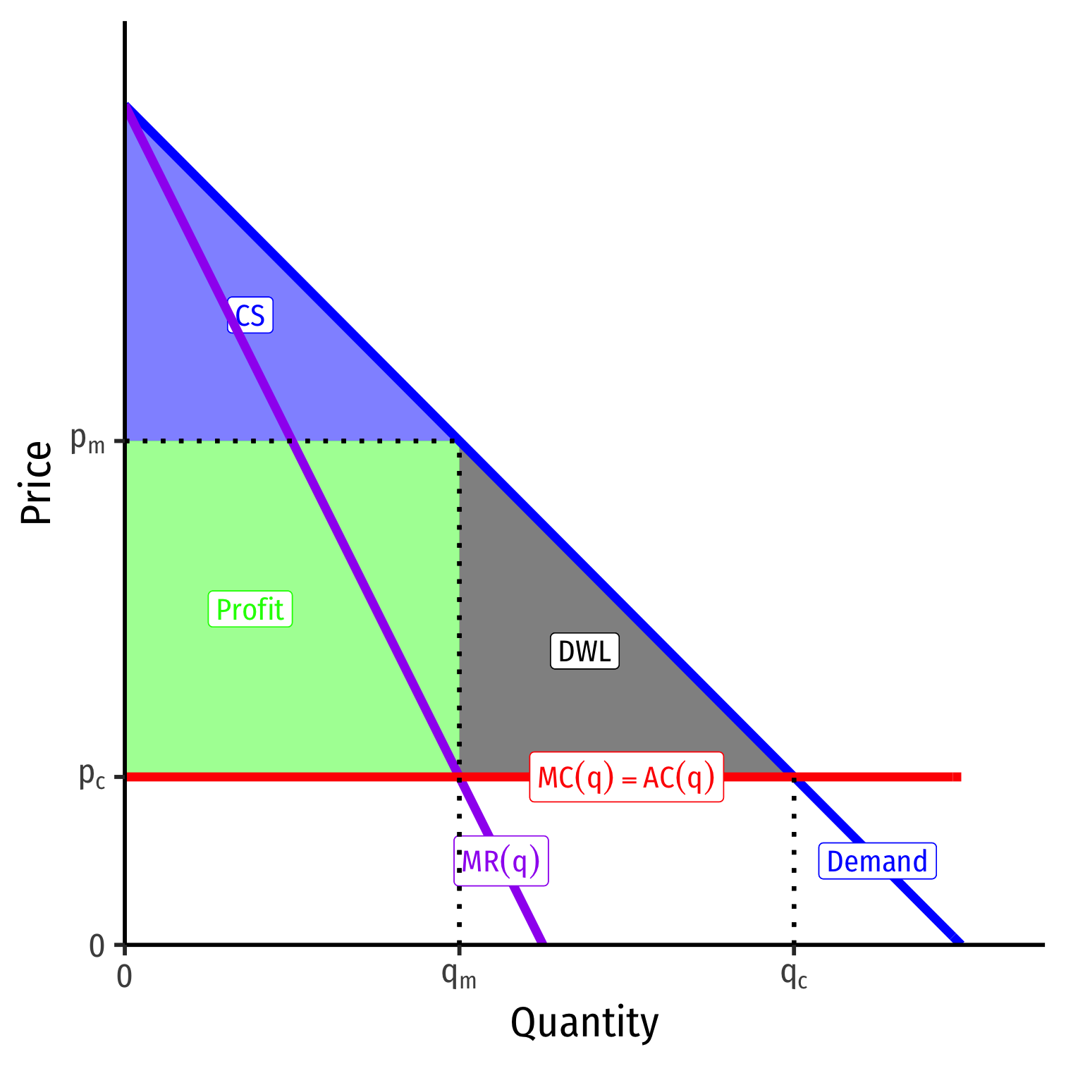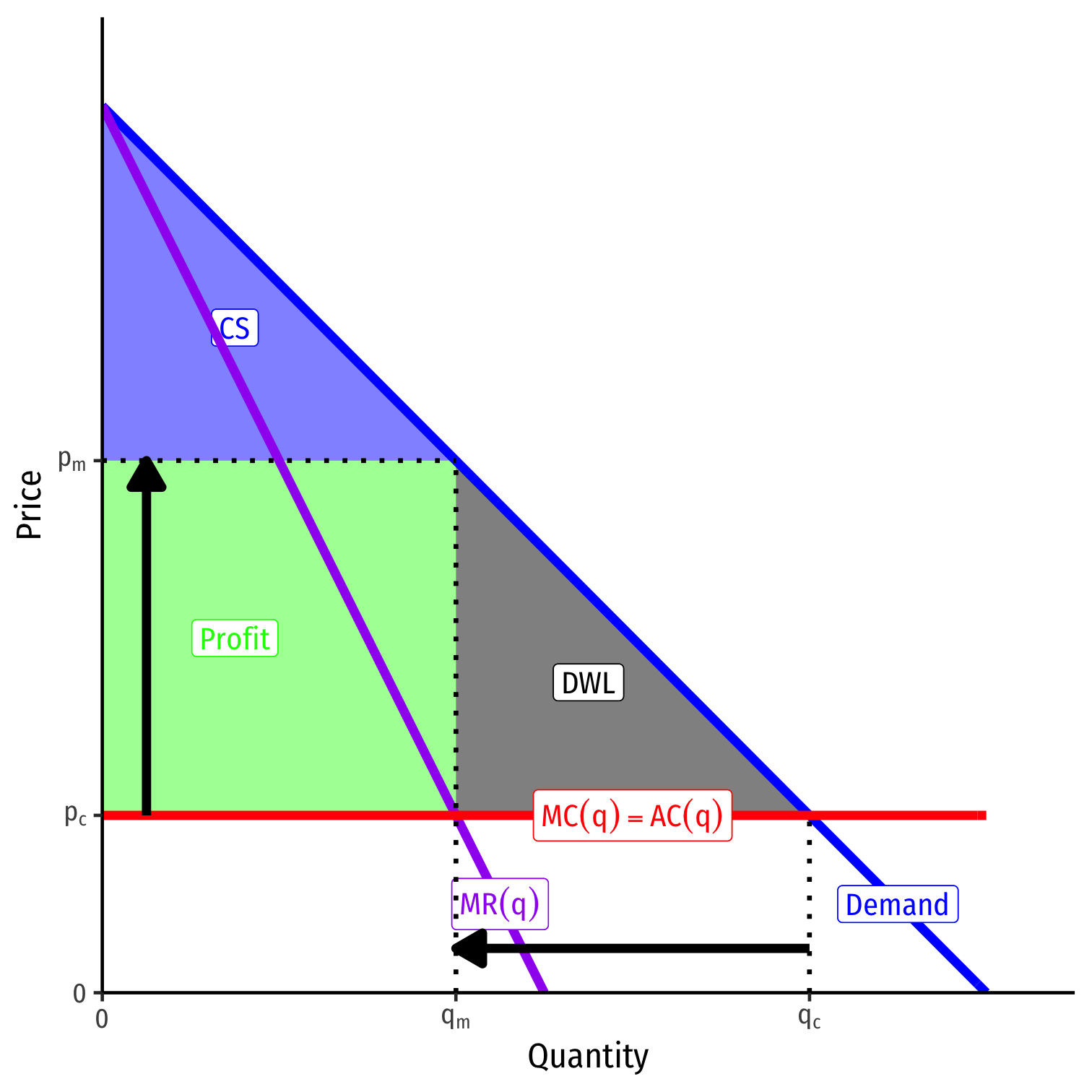 A monopolist would face entire industry demand and set (qm,pm):
