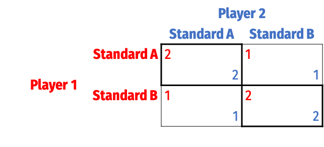 Two Nash equilibria again: (A,A) and (B,B)