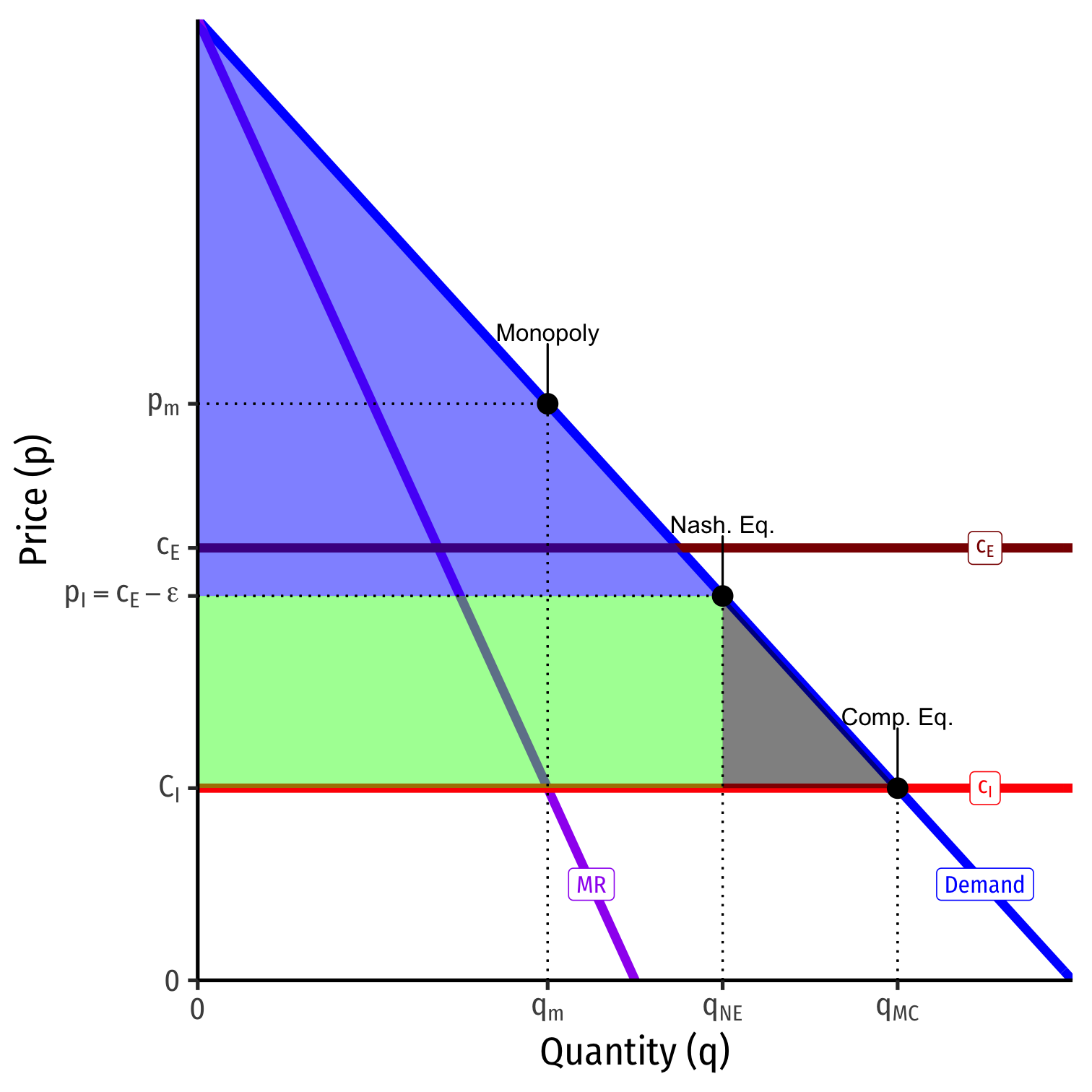 Case II: What if the Entrant has higher costs than the Incumbent: cE>cI?